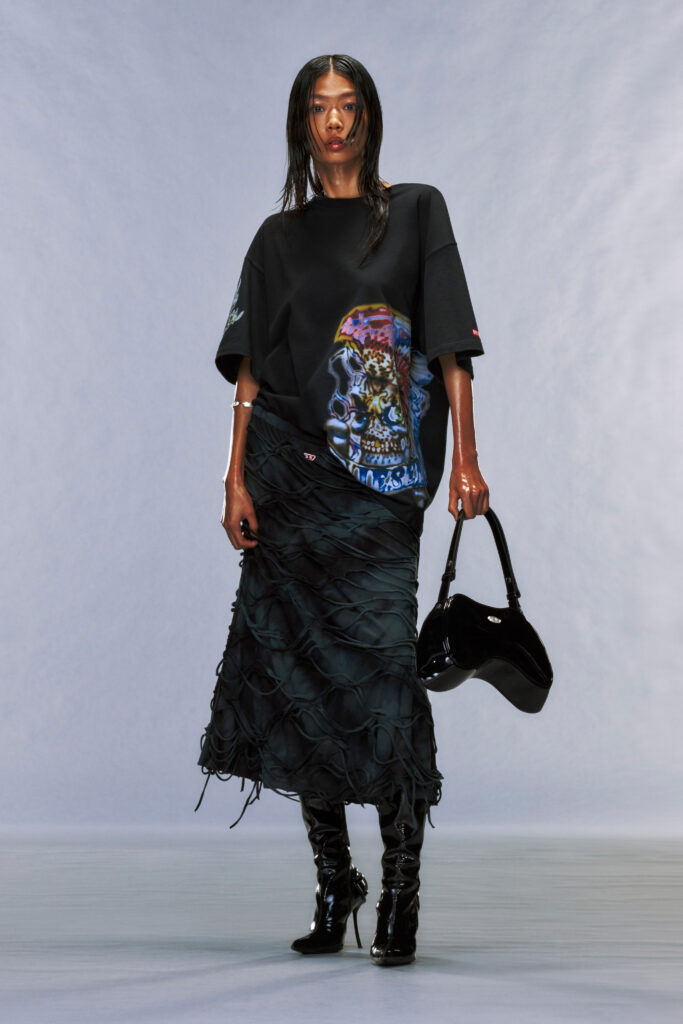 Фирменный стиль Diesel сегодня, отличает сочетание непринужденности и актуальных трендов. Узнаваемые черты бренда — джинсовая одежда с яркими принтами, эффектный логотип, провокационные слоганы на одежде.