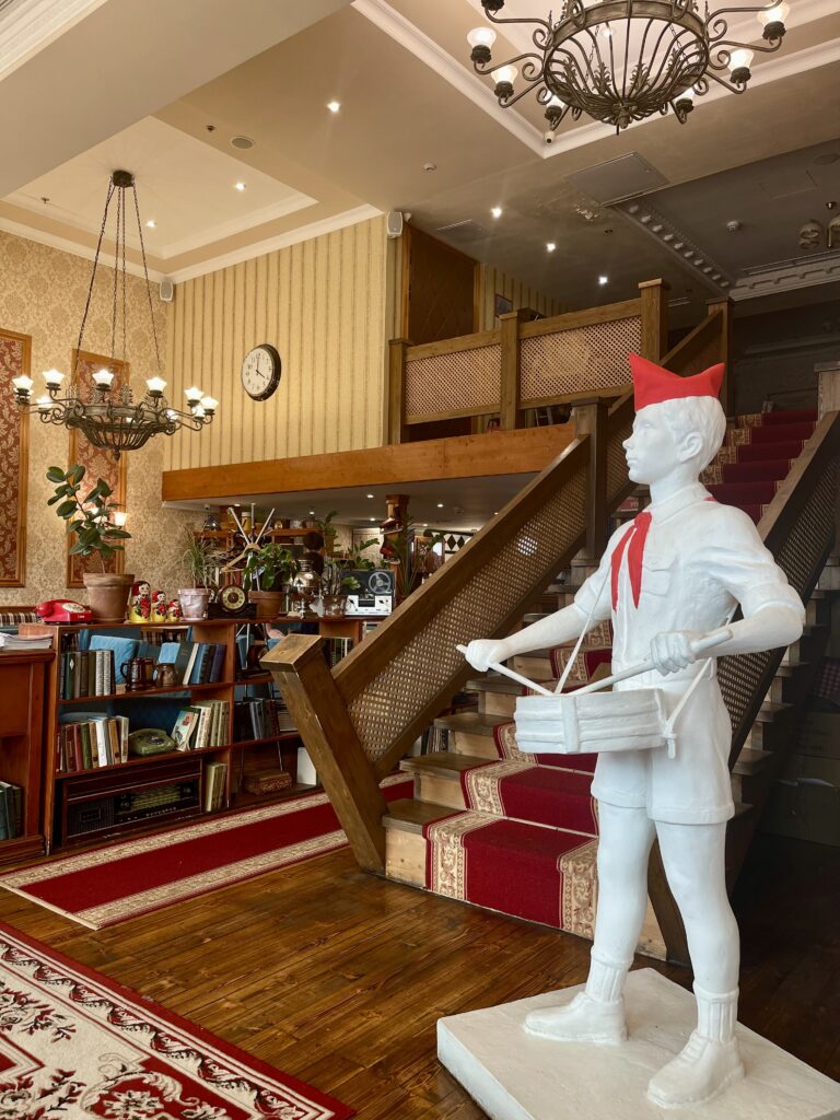 «Вареничная №1» — кафе, в котором просыпаются ностальгические воспоминания при виде раритетных деталей: ретро фотографий, виниловых пластинок и книг из серии ЖЗЛ, чудом не попавших в букинистические лавки. Заглянув, в гости к нам, Вы окунетесь в атмосферу, где царят уют, гостеприимство и русский быт времен СССР. Единой нитью, как красной лентой пронизывает все наши кафе — кухня, главным блюдом которой, являются легендарные вареники. Их мы готовим более 20 видов!
